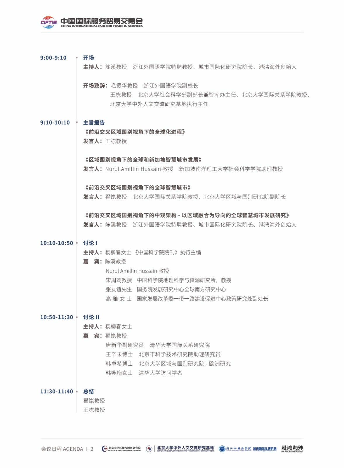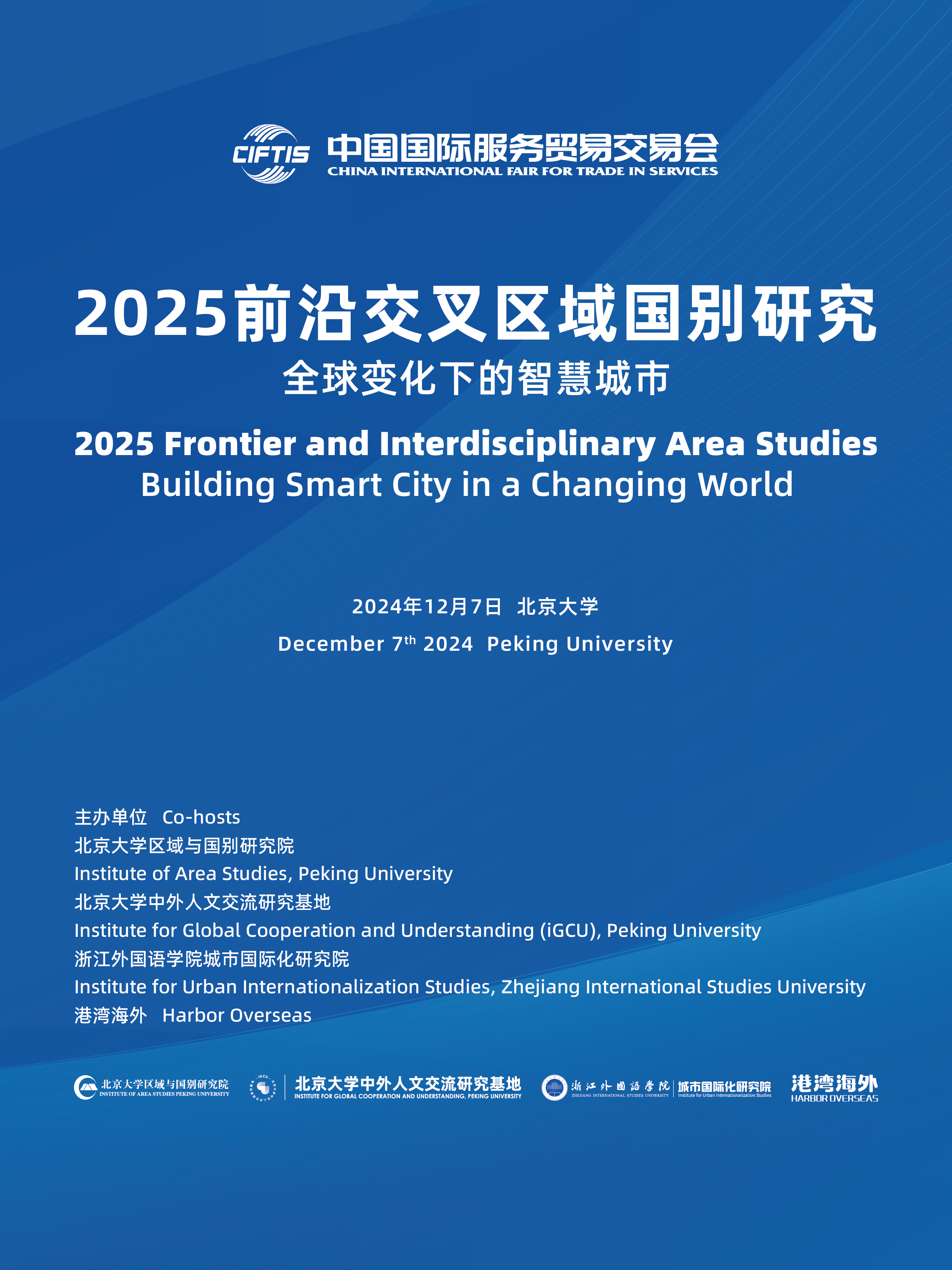 “2025前沿交叉区域国别研究-全球变化下的智慧城市”将于2024年12月7日上午在北京大学百周年纪念讲堂202召开。本次会议由北京大学区域与国别研究院、北京大学中外人文交流研究基地、浙江外国语学院城市国际化研究院、港湾海外联合主办。本次会议也是中国国际服务贸易交易会体系的组成部分。